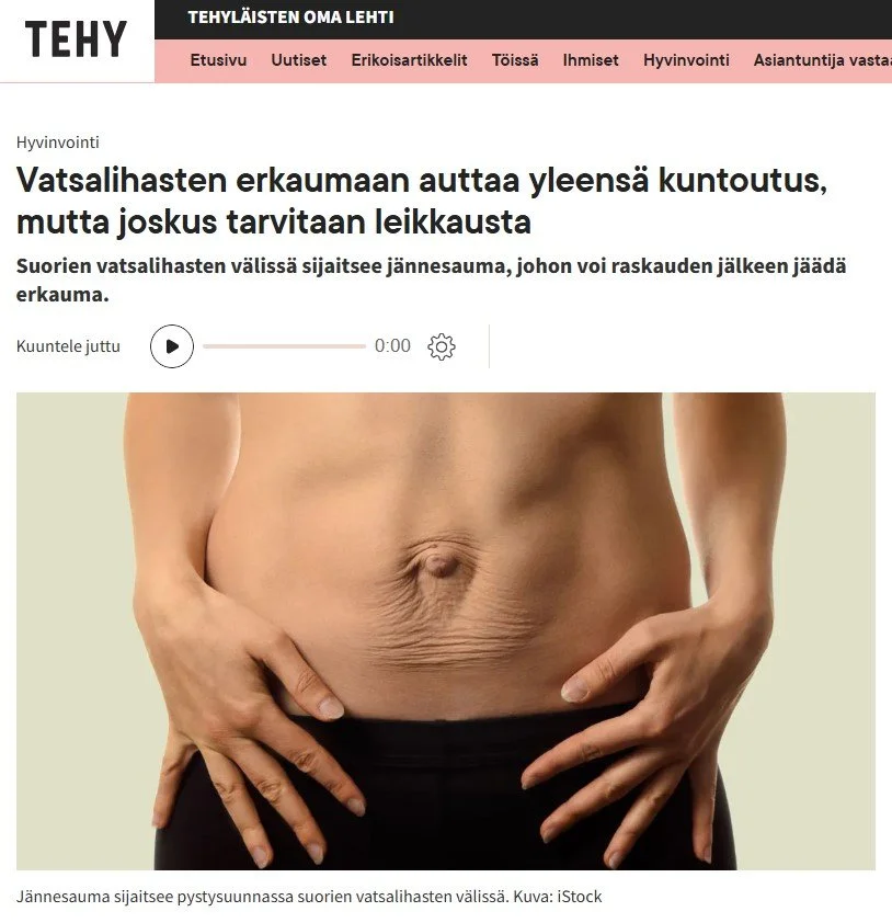 HS.fi: Raskauden aikana syntynyt vatsalihasten erkauma ei yleensä haittaa elämää, kertoo tutkimus